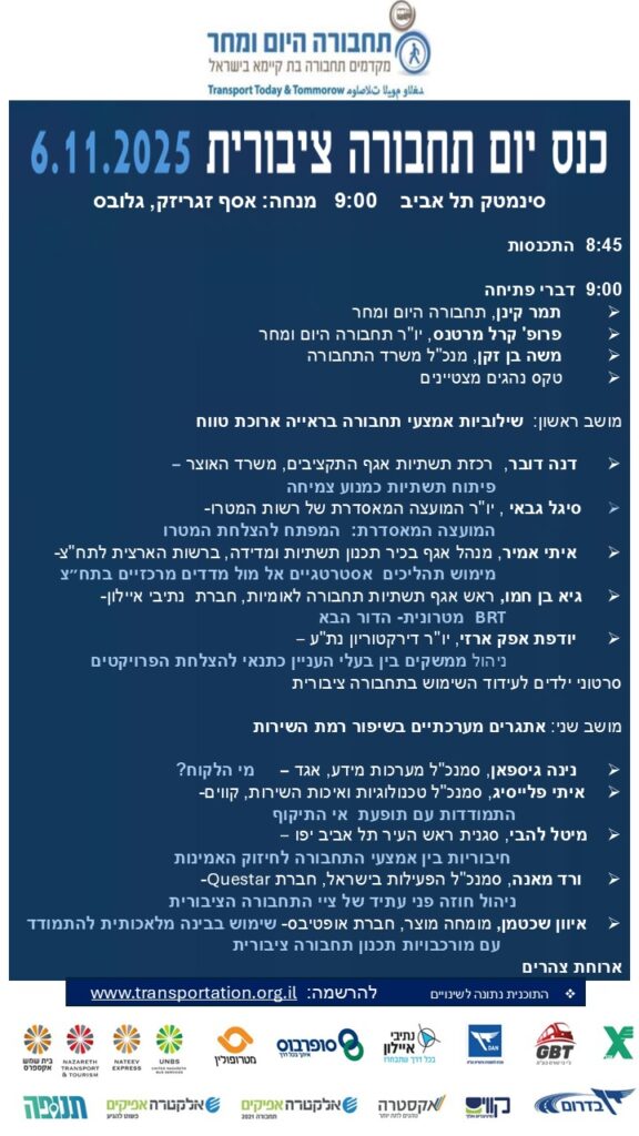 סדר יום כנס יום תחבורה ציבורית 2025